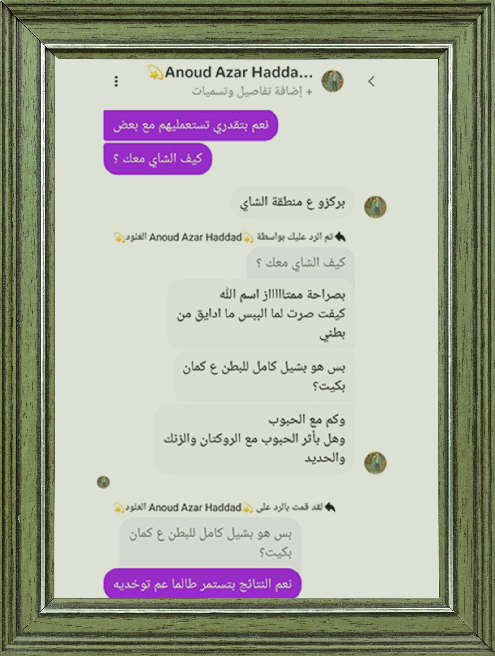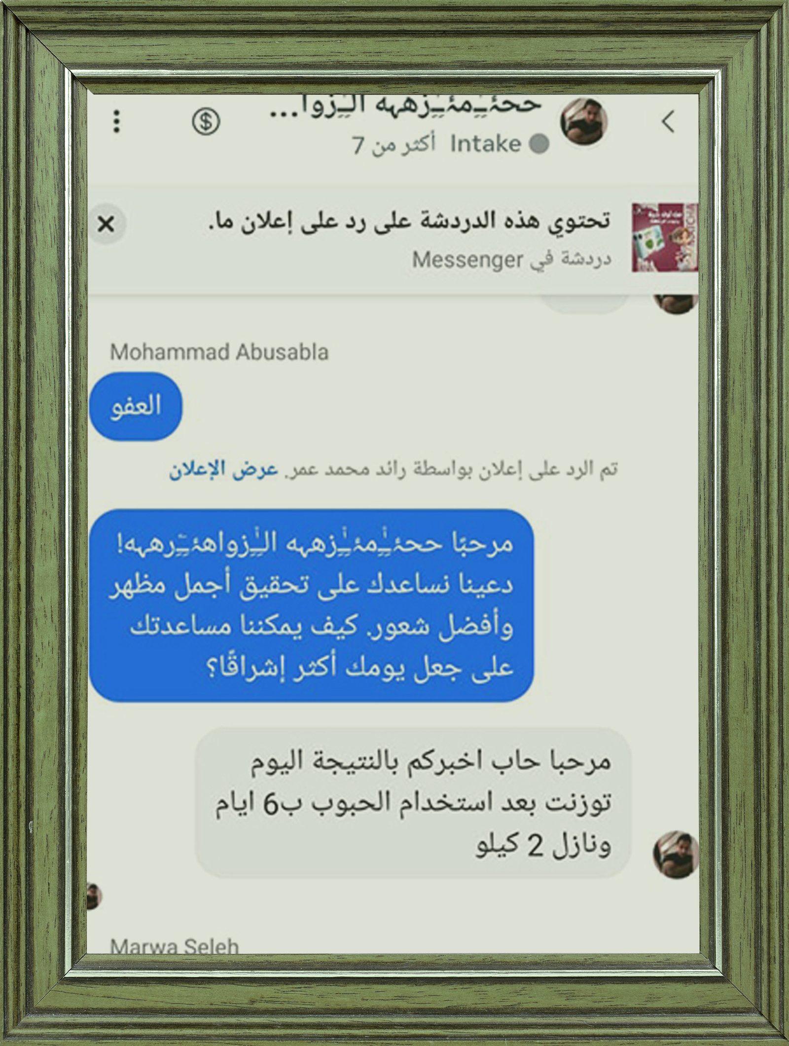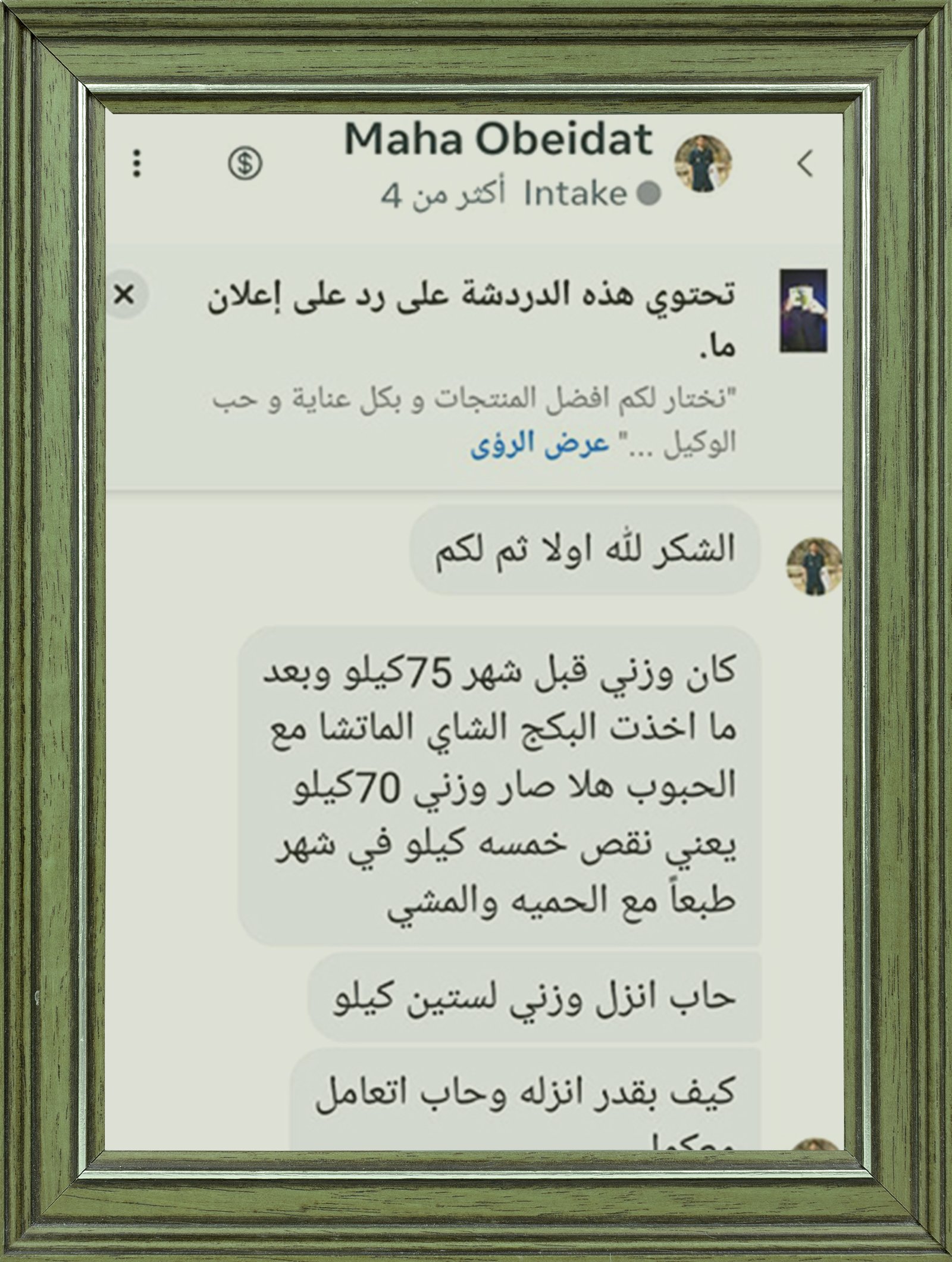 عند شراء المنتج ستتواصل معكم الدكتورة أسيل فورا التي ستتابع حالتكم وتزودكم بتوصيات تشمل نوعية الغذاء الصحي والتوصيات التي تساهم بنزول أسرع بالوزن