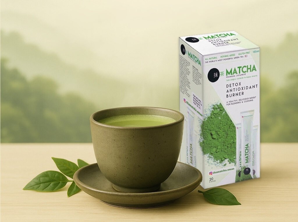 شاي الماتشا الأصلي هو شاي أخضر ياباني نقي يتم طحن أوراقه الكاملة حتى تصبح مسحوقاً ناعماً بلون أخضر زاهي. يتميز الماتشا بتركيز عالٍ من مضادات الأكسدة والمواد الغذائية مقارنة بالشاي الأخضر العادي.