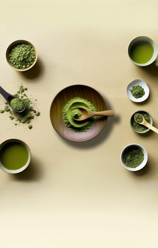 1️⃣ ضع نصف ملعقة صغيرة من مسحوق الماتشا في كوب.