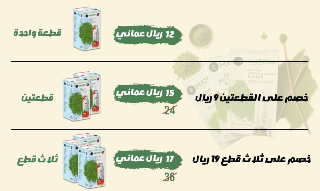 لذلك أولا ننصح باستخدام كورس كامل من الماتشا ( 3 عبوات ) تكفي العبوة لاستخدام 10 أيام ( ظرف صباحا وظرف مساءً )